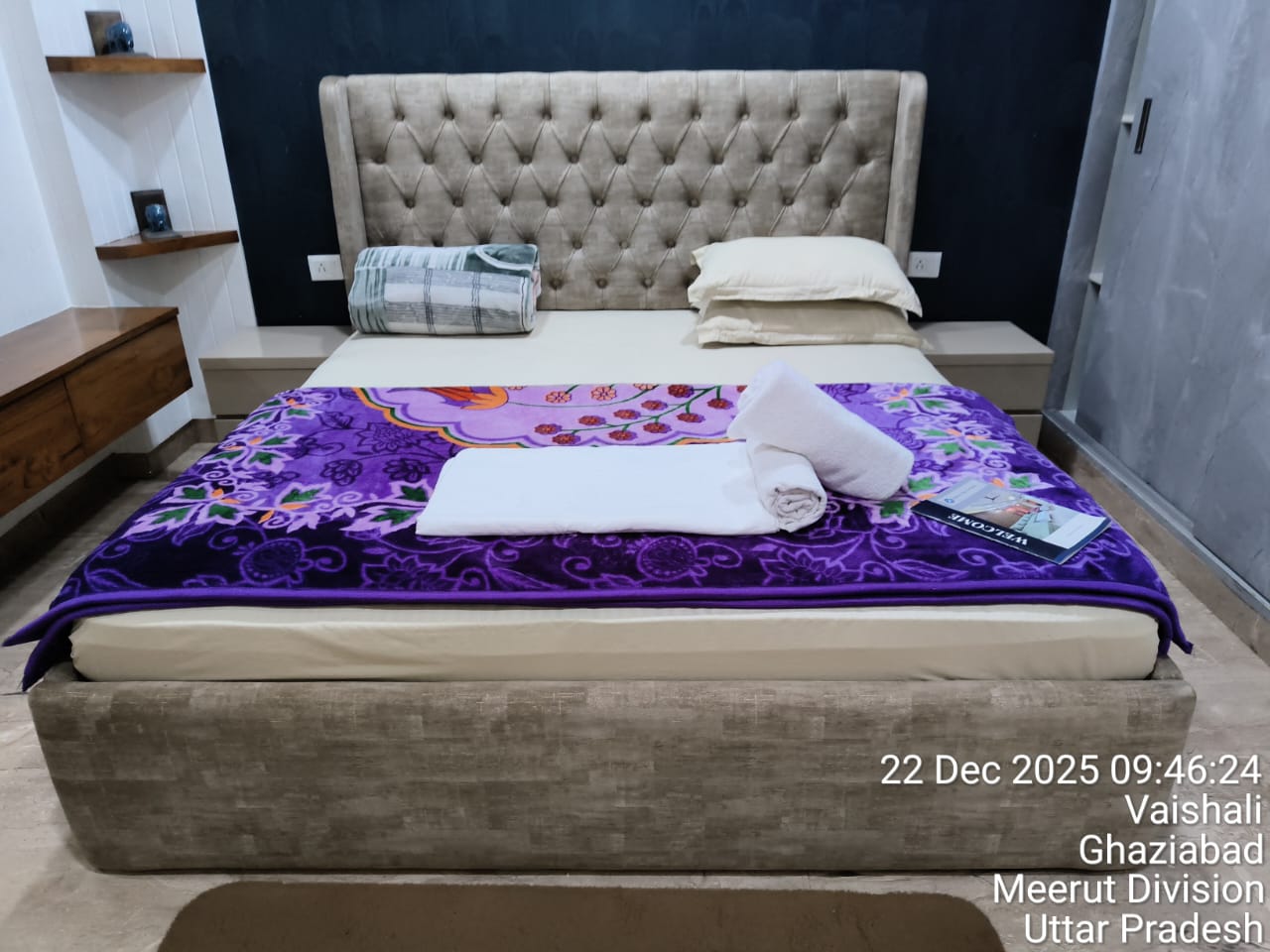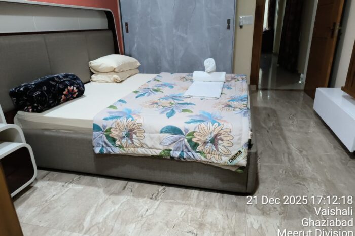 Welcome to this Luxurious Fully air-conditioned 4 Bedrooms Apartment with fully equipped kitchen, fast wifi, great interiors which can sleep upto 16 persons in Sector 4 of Vaishali. The flat is on ground floor with parking. It is on main road and less than 1 km from Vaishali Metro Station. We have three more apartments in sector 4 of Vaishali, also listed here. The flat is ideal for recovering patients, marriage guests, families, tourists as well as business visitors to Noida and East Delhi.