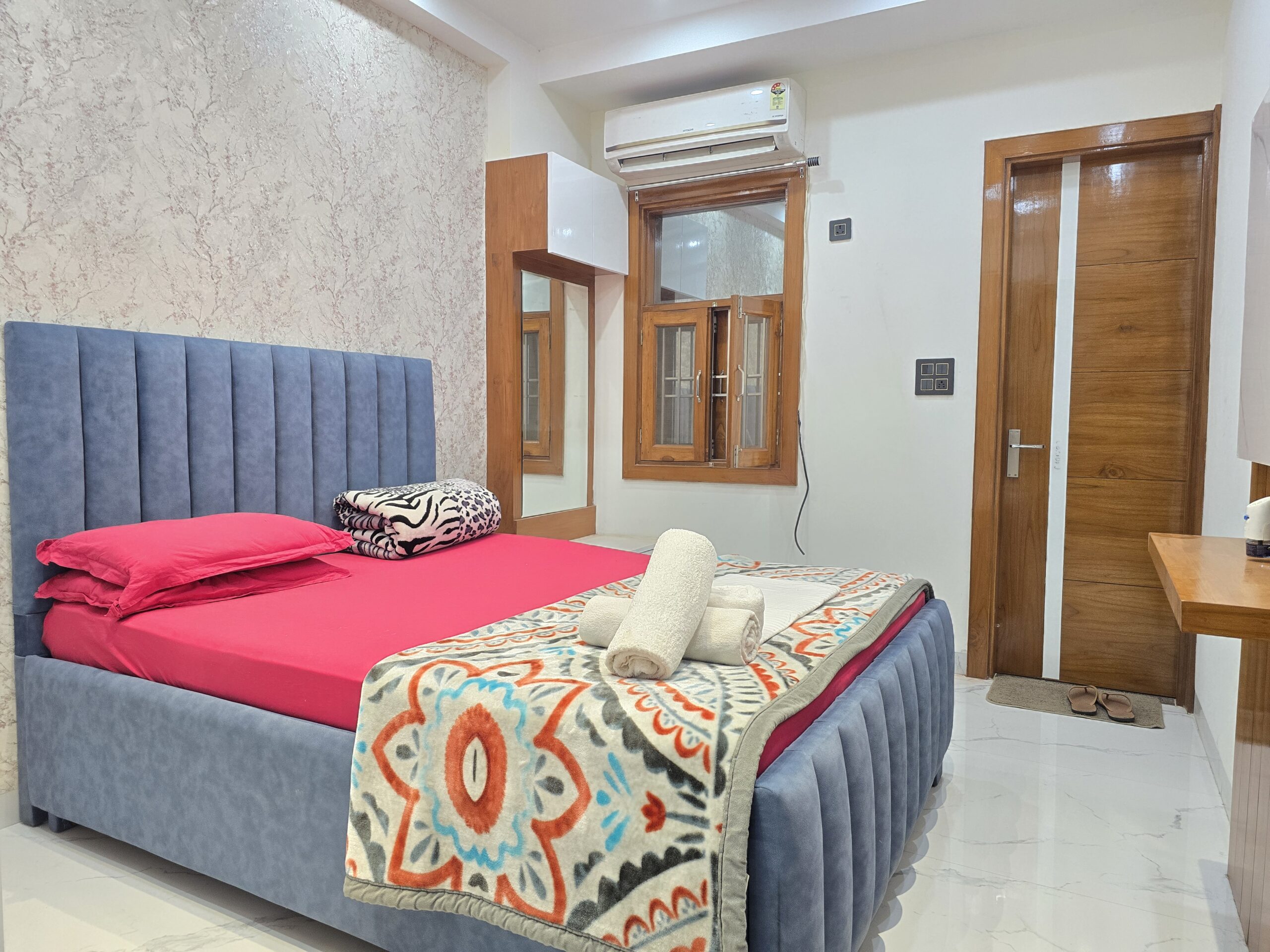 Welcome to this Luxurious and very large Fully air-conditioned 3 Bedrooms Apartment with fully equipped kitchen, fast wifi, great interiors which can sleep upto 12 persons in Sector 4 of Vaishali. . It is on main road and just 1 km from Vaishali Metro Station. It is peaceful, yet located in city centre in the middle of shopping area. The flat is ideal for recovering patients, marriage guests, families, tourists as well as business visitors to Noida and East Delhi.